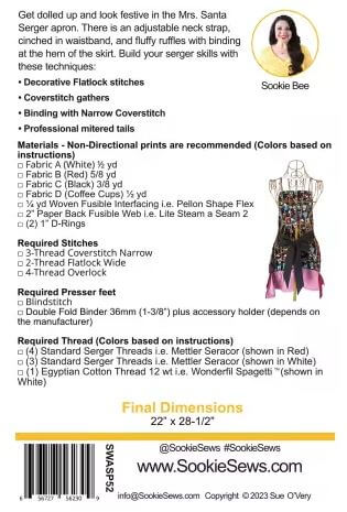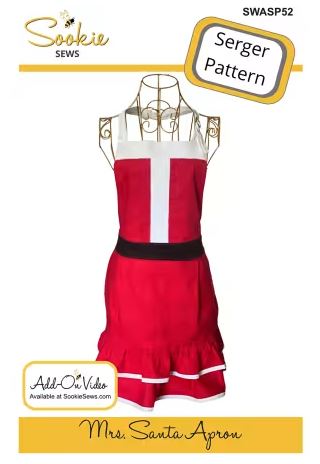 Get dolled up and look festive in the Mrs. Santa Serger apron. The apron is fully lined, made entirely on the serger with a little hand sewing touches.